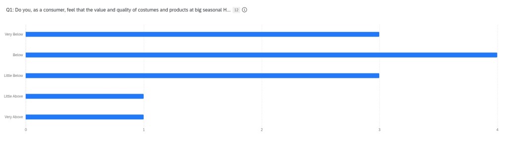 In a survey we conducted, most people said that the value and quality of costumes and products at big seasonal Halloween stores was a little below, below, and very below the price paid: