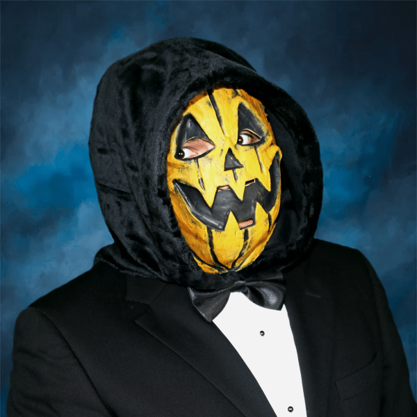 For instance, with our masks we love using a technique called “stipple sponging.” Let’s say we’re making a skull mask. We first start with a black base so the whole mask is just plain black. Then, we take a sponge and dip it in white paint and gently pat the surface of the mask over and over again. The white only gets applied to the surface where it can reach and leaves details and crevices black. This way were able to create dark and interesting detail without having to spend a long time on each unit which in turn saves our customers money. Such a technique can be demonstrated on our Pumpkin half-mask shown below: